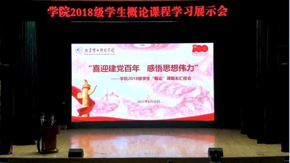 展示会以“喜迎建党百年,感悟思想伟力”为主题,由2018级13个团支部和习近平新时代中国特色社会主义思想学习研究会成员代表组成14支队伍,分专题汇报本学期学习成果,向党的百年华诞献礼。各队伍围绕马克思主义中国化的最新成果——习近平新时代中国特色社会主义思想的核心内容,通过情景剧、朗诵等多种形式,展现了新思想的理论魅力和实践价值,其中体现的坚定理想信念、真挚人民情怀、高度自觉自信、鲜明问题导向、无畏担当精神,集中反映了当代中国共产党人的政治品格、价值追求和精神风范。