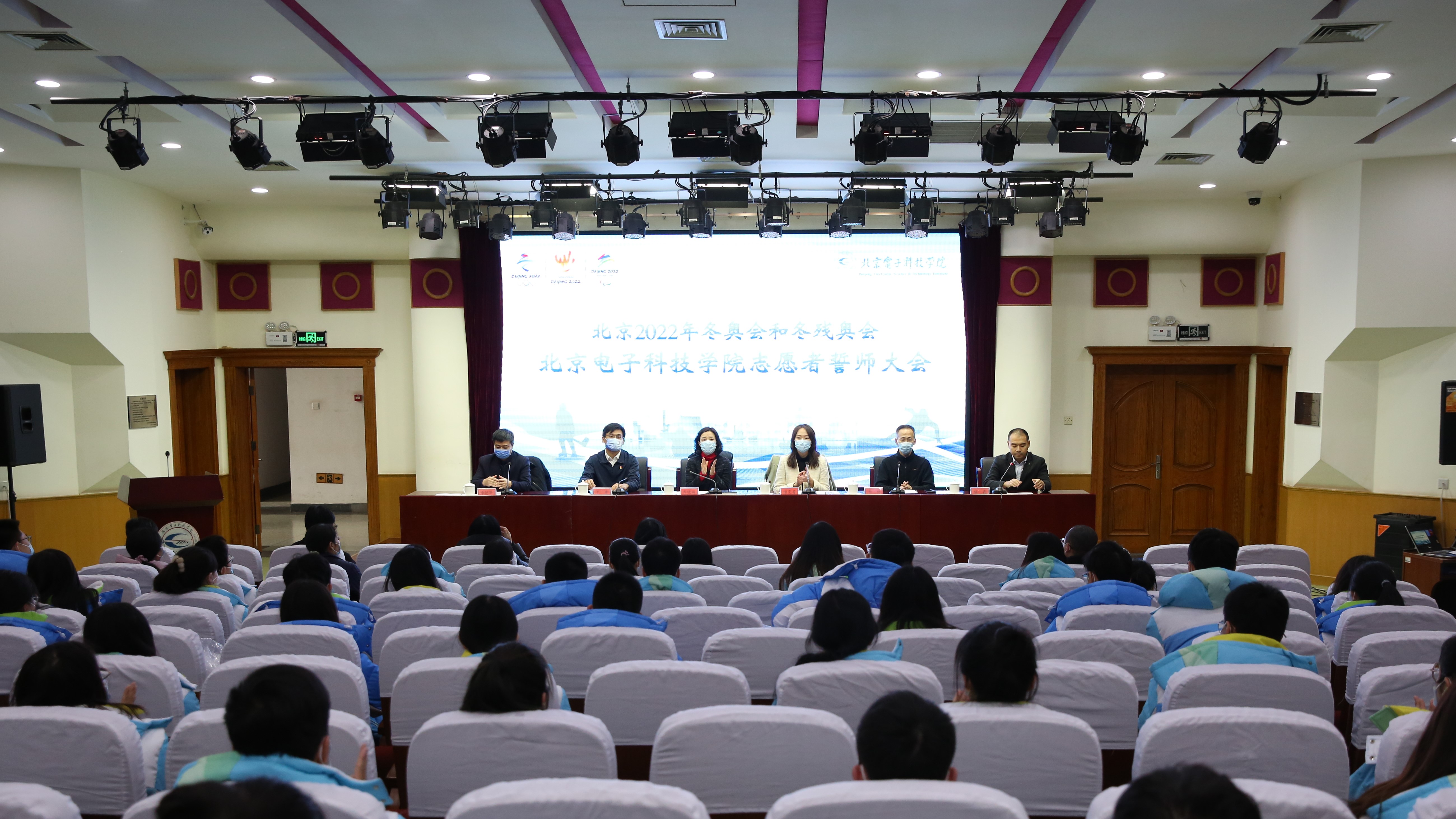 2022年1月18日下午,电科院冬奥会和冬残奥会志愿者誓师大会在学术报告厅举办,94名学生核心志愿者和城市志愿者参加,副院长乔晓丽、肖嵩和丰台、石景山团区委有关负责同志及学工部、后勤服务中心、团委、各系党总支负责同志受邀出席会议。