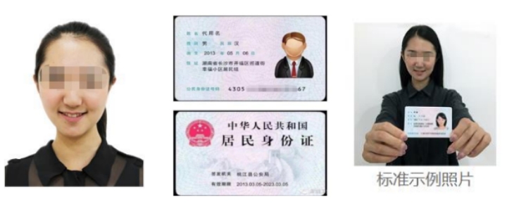 3)考生本人手持身份证照片。拍摄时,将持证的手臂和上半身整个拍进照片,头部和肩部要端正,头发不得遮挡脸部或造成阴影,要露出五官;确保身份证上的所有信息可见、完整。