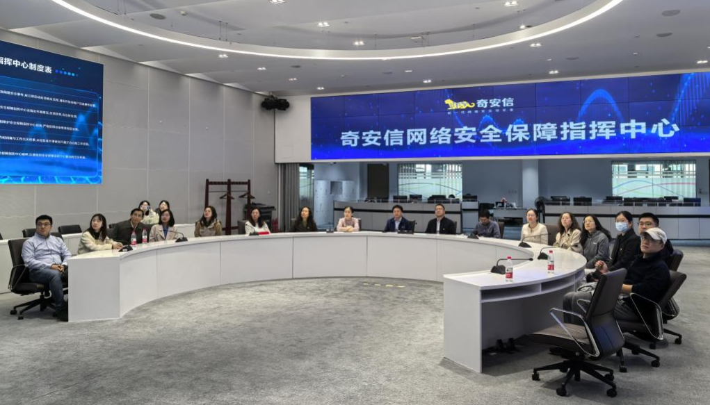 BU相关专家的陪同下,支部党员先后实地参观了奇安信集团展厅、网络安全保障指挥中心,通过丰富的图文资料、实物展示以及生动的讲解,党员们深入了解了网络安全发展历史、严峻挑战及在应对当前挑战中所取得的创新成果。从先进的网络安全防护技术到高效的应急响应机制,奇安信集团以实际行动展现了企业在守护网络安全方面的责任与担当。