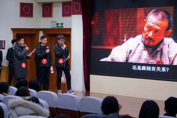 本届配音大赛共设置三个环节,第一环节为经典之声,来自各系及研究生的十支队伍按照赛前抽签顺序依次上台表演配音选段。各队选手在为我们带来了精彩纷呈的视听盛宴的同时,也给我们带来了许多欢声笑语,令人难以忘怀。