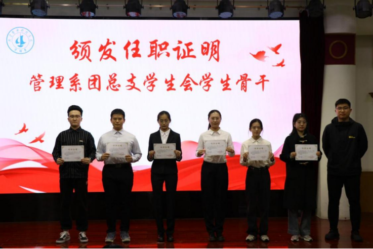 我们不懈砥砺奋进,秉持着严谨认真的工作态度。本次大会表彰了一批砥砺奋斗的代表——管理系学生党支部、团总支学生会学生骨干。他们以身作则,努力提高工作效能,热心服务广大同学。他们守好了兜底防线,始终把“全心全意为大家服务”作为工作的出发点和落脚点。