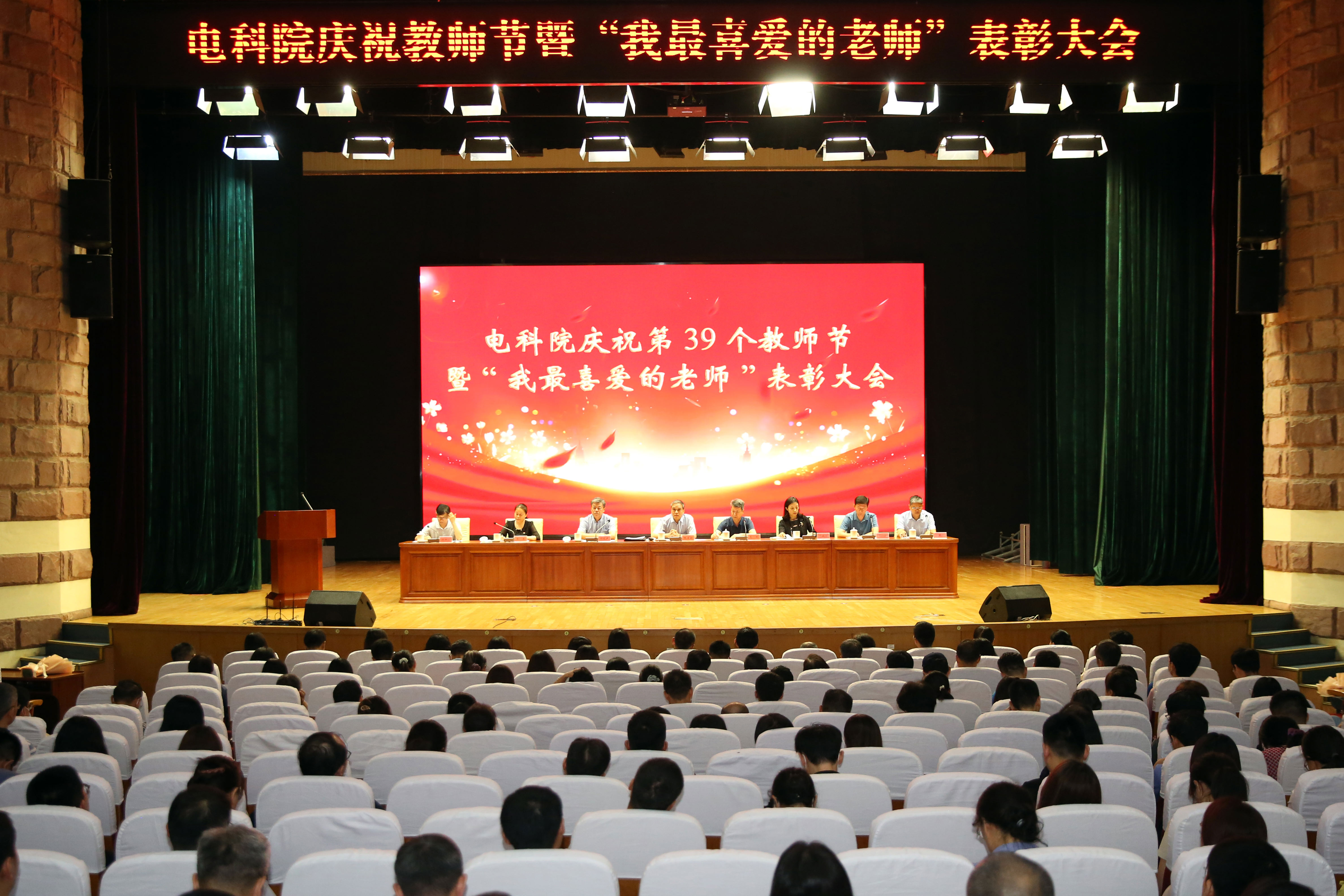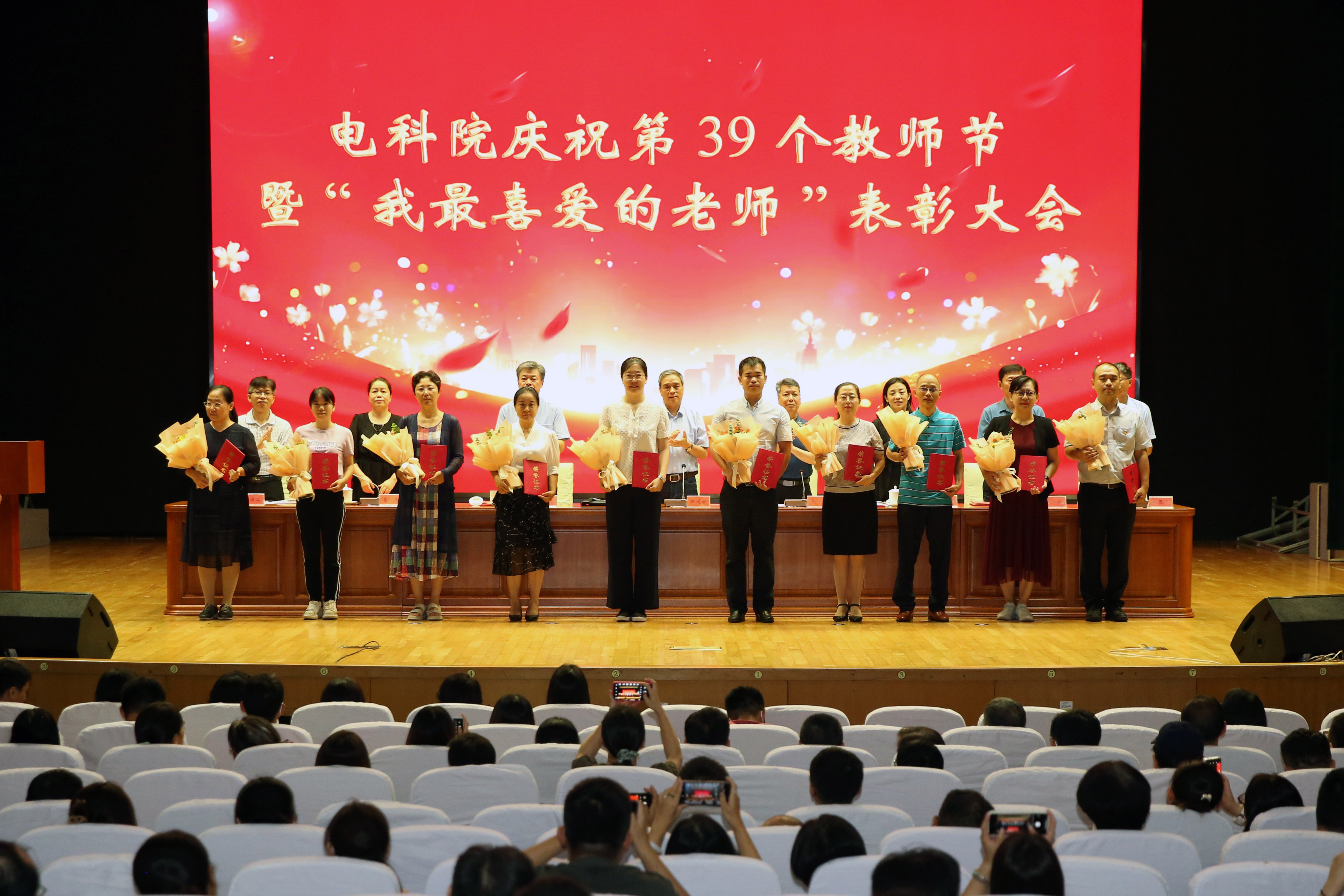 9月8日,电科院庆祝教师节暨“我最喜爱的老师”表彰大会在文化艺术中心隆重举行。院领导,全体教职工和学生代表共约630人参会。会议由院党委副书记、院长毛明主持。