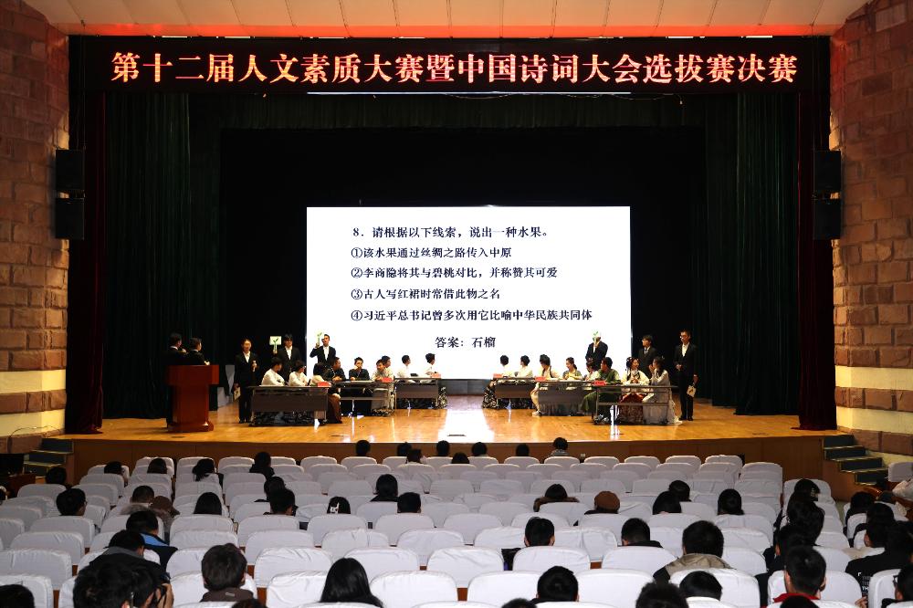 1124日下午,电科院第十二届人文素质大赛暨中华诗词大会选拔赛决赛在文化艺术中心举办。院领导徐涛、乔晓丽、肖嵩姚思远,相关职能部门负责同志、各系部党总支书记以及师生代表共计约500人到场观赛。