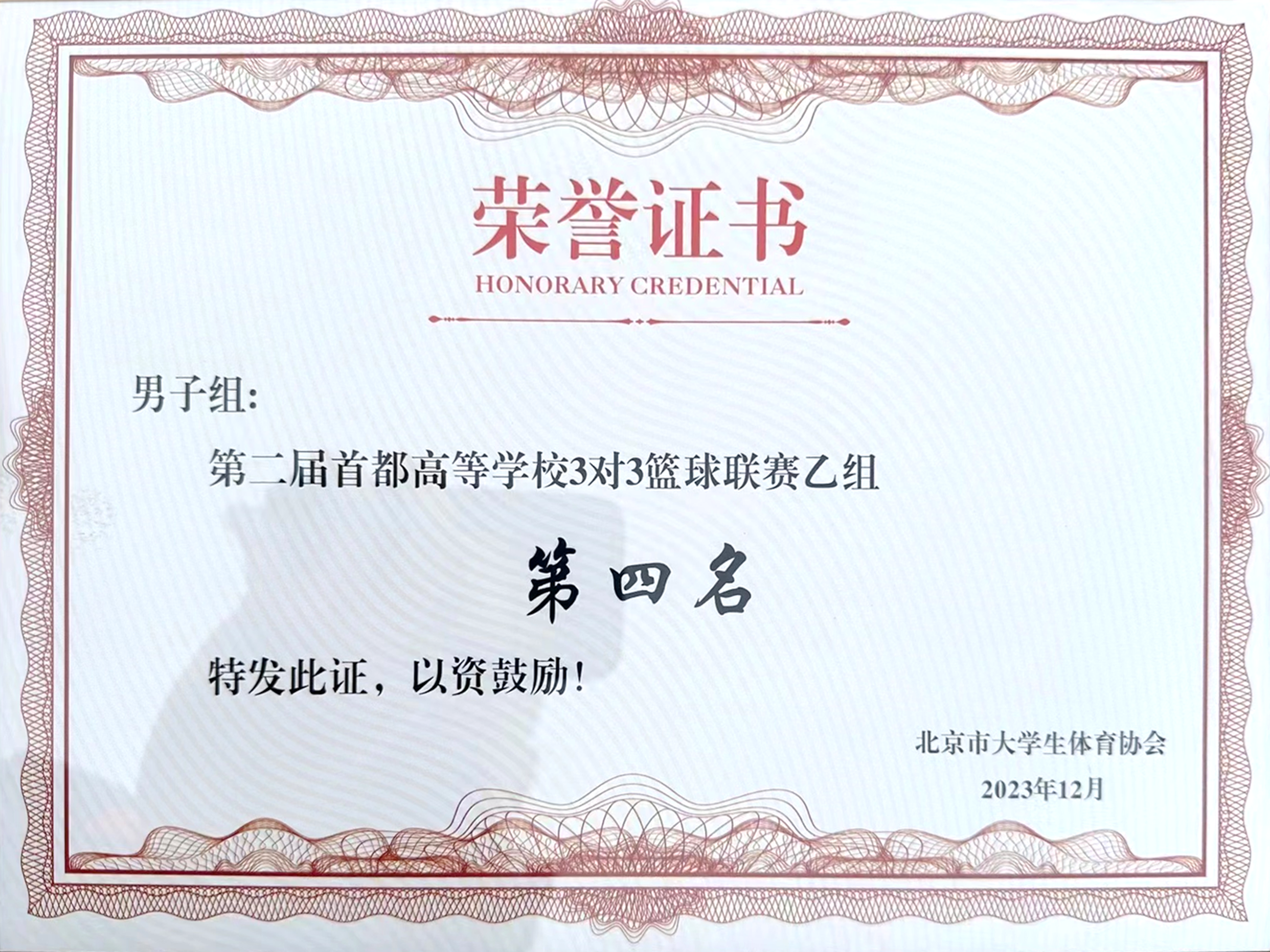 学院篮球队获得第二届首都高等学校3V3篮球联赛乙组第四名