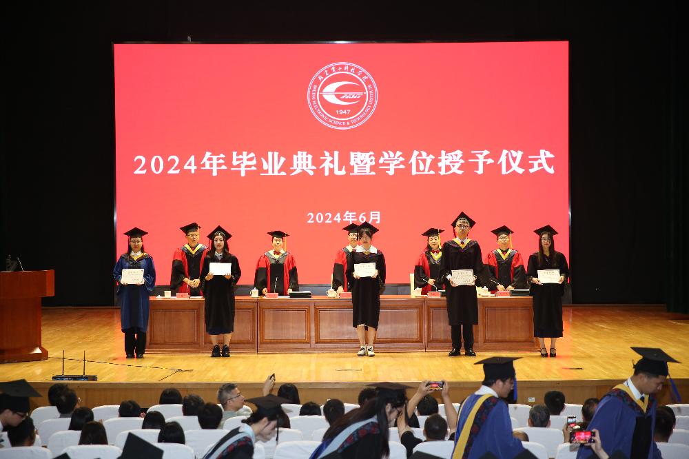 典礼上,副院长谢四江宣读了《关于表彰2024届优秀毕业生的决定》及优秀毕业生名单。院领导为优秀毕业生颁发荣誉证书,为毕业生代表颁发学位证书并拨穗。毕业生代表向教师献花,表达对老师们传道授业的感恩之情。